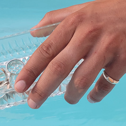 Bientôt 2 ans que j'ai commandé cette chevalière avec personnalisation, elle est parfaite. Argent de qualité et résistant, je la porte quotidiennement et elle ne bouge pas.